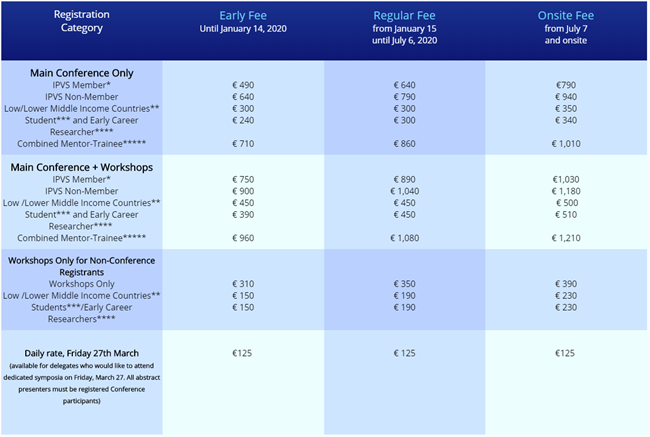IPVC 2020 注册费: