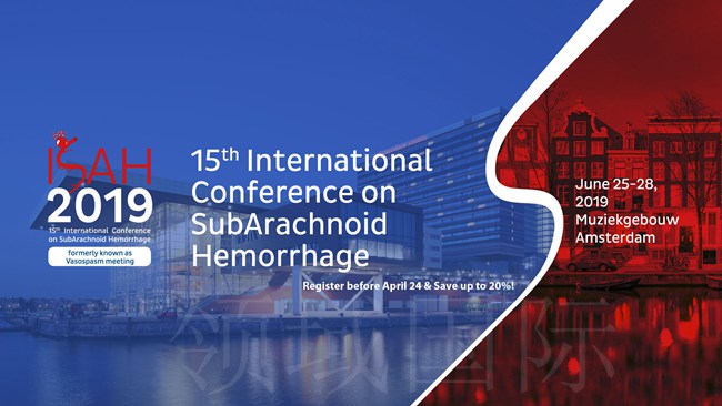 2019年第15届蛛网膜下腔出血国际会议(ISAH2019)将于2019年6月25日至28日在荷兰阿姆斯特丹举行,该会议之前称为血管痉挛会议,重点关注的是动脉瘤性蛛网膜下腔出血后颅内动脉狭窄的发病机制和治疗方法;然而,在过去的二十年中,对蛛网膜下腔出血中颅脑损伤的其他机制的科学兴趣有所增加,包括早期颅脑损伤、微血栓形成和皮质扩散去极化。因此,会议的重点扩展到涉及蛛网膜下腔出血的各个方面,从基础科学到动脉瘤治疗、神经危重症护理、抢救治疗、康复和预防等等。2019年的会议将与约翰霍普金斯大学医学院神经危重症护理学教授兼主任与神经重症护理学会主席Jose I Suarez进行密切合作。大会组委会诚邀神经外科、神经危重症护理、介入放射学、神经病学、康复学、神经科学、护理等领域的同行积极参与本次会议,一起分享知识传播经验,共同建立一个强大的多学科蛛网膜下腔出血科学知识交流的平台。